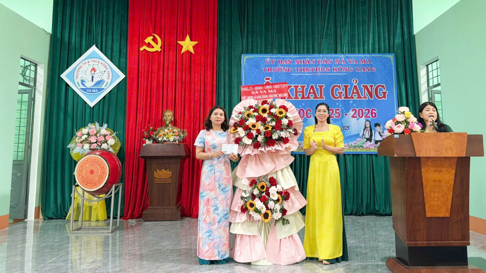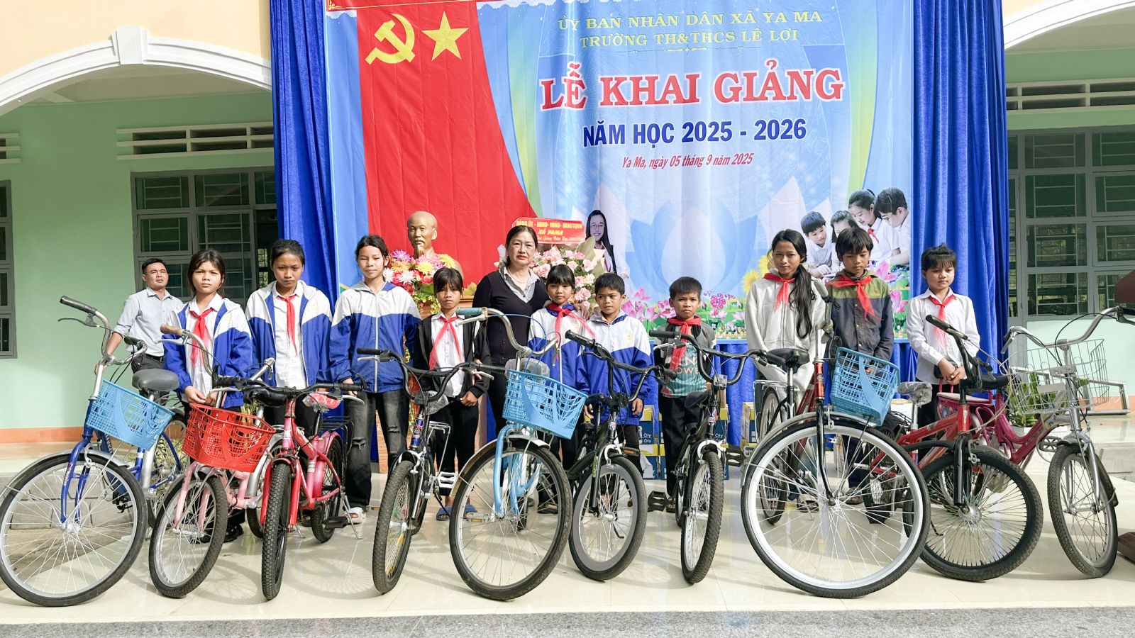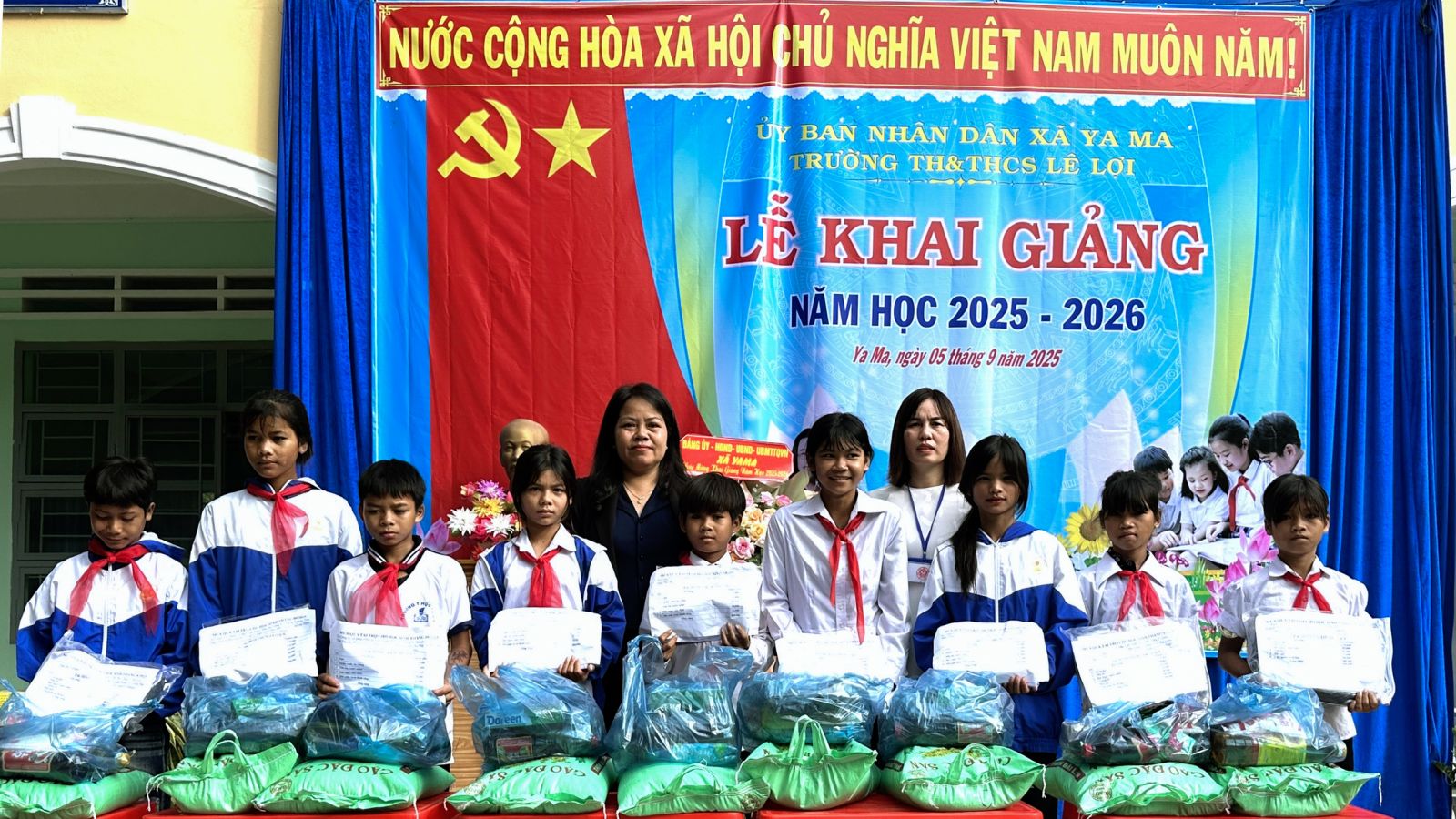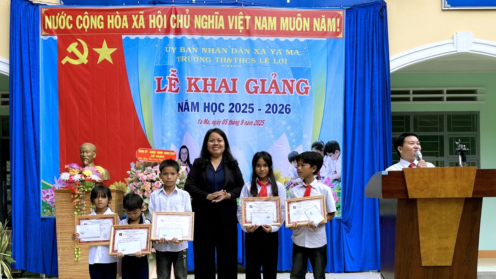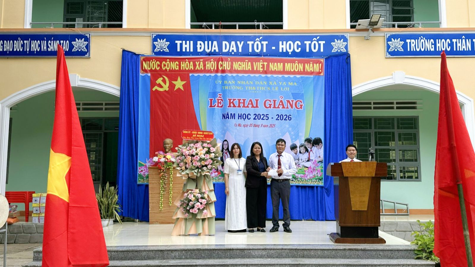 Đồng chí Đinh Thị Biu - Bí thư Đảng ủy, Chủ tịch HĐND xã đã đến dự khai giảng tại Trường TH&THCS Lê Lợi. Nhân dịp này, Bí thư Đảng ủy xã cùng lãnh đạo xã, các đơn vị, doanh nghiệp và nhà hảo tâm đã trao tặng 05 suất học bổng, 42 phần quà, 10 chiếc xe đạp và 1.000 quyển vở cho những học sinh có hoàn cảnh khó khăn, học giỏi, thể hiện sự quan tâm sâu sắc đến sự nghiệp giáo dục.