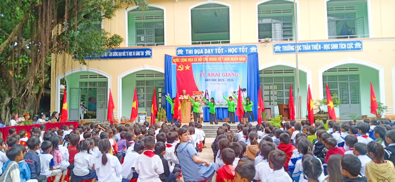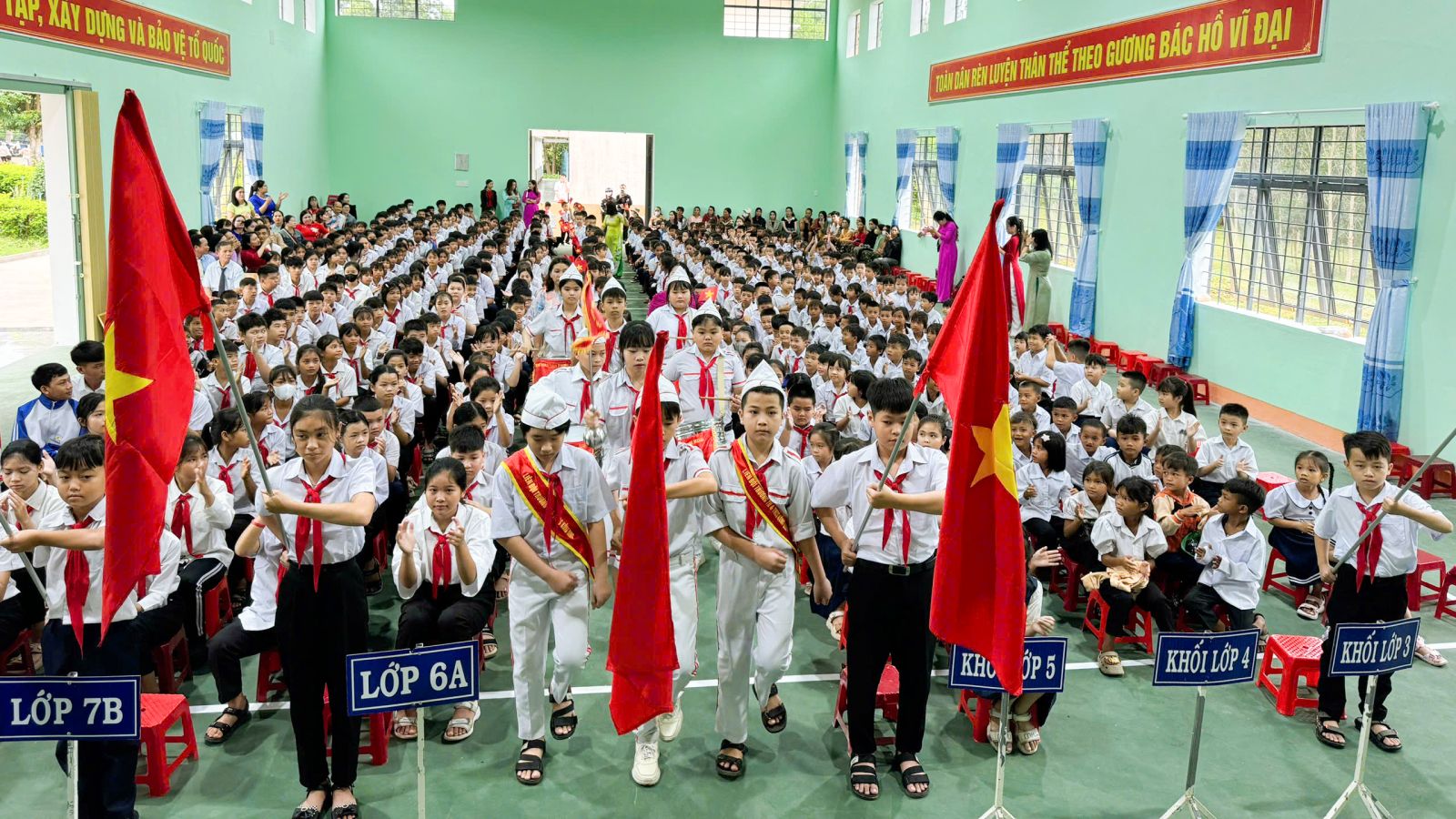 Ngay từ 6 giờ 45 phút sáng, các trường đã đồng loạt tổ chức lễ khai giảng. Buổi lễ diễn ra ngắn gọn, phù hợp với từng cấp học, nhưng vẫn đảm bảo không khí trang nghiêm, tạo động lực và niềm hứng khởi cho học sinh trước thềm năm học mới.
