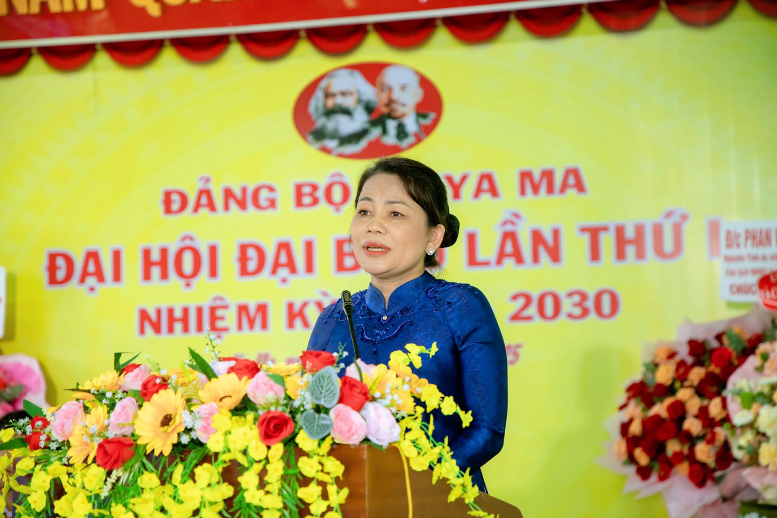 Phát biểu chỉ đạo Đại hội, đồng chí Nguyễn Thị Phong Vũ - UVBTVTU, Trưởng Ban Tuyên giáo và Dân vận Tỉnh ủy, nhấn mạnh ý nghĩa đặc biệt của Đại hội Đảng bộ xã Ya Ma lần thứ I diễn ra trong bối cảnh nước ta đang đẩy mạnh cuộc cách mạng sắp xếp tổ chức bộ máy của hệ thống chính trị để vững bước tiến vào kỷ nguyên mới - kỷ nguyên vươn mình của dân tộc, chuyển trạng thái từ “vừa chạy vừa xếp hàng” sang “hàng thẳng, lối thông, đồng lòng cùng tiến”, vươn tới tương lai. Việc sáp nhập 03 xã Ya Ma, Đăk Tơ Pang và Kông Yang từ ngày 1/7/2025 đánh dấu bước ngoặt trong cách vận hành bộ máy chính trị cơ sở: gần dân hơn, hiểu dân hơn, phục vụ dân tốt hơn. Ban Thường vụ Tỉnh ủy ghi nhận sự đoàn kết, thống nhất cao độ của Cấp ủy, chính quyền và nhân dân xã Ya Ma, đã nỗ lực vượt khó, hoàn thành 14/15 chỉ tiêu nhiệm kỳ 2020-2025, trong đó có 06 chỉ tiêu vượt kế hoạch; đặc biệt, đã huy động và sử dụng hiệu quả các nguồn lực đầu tư, hoàn thành tốt chương trình xóa nhà tạm, nhà dột nát; văn hóa - xã hội có chuyển biến tích cực, an sinh xã hội được đảm bảo, đời sống vật chất và tinh thần của nhân dân ngày càng được cải thiện. Đối với các tồn tại, hạn chế kìm hãm sự phát triển của xã, đồng chí đề nghị Đại hội tập trung nghiên cứu, thảo luận và đưa ra những giải pháp khả thi để khắc phục, tập trung vào các nhóm giải pháp trọng tâm, gồm: phát huy tối đa sức mạnh của khối đại đoàn kết toàn dân; ban hành chương trình hành động cụ thể thực hiện mục tiêu, nghị quyết Đại hội; hoàn thiện quy hoạch phát triển xã mới; xã hội hóa công tác giảm nghèo và chăm sóc sức khỏe cho nhân dân; thu hút đầu tư, hỗ trợ doanh nghiệp phát triển; đẩy mạnh chuyển đổi số; tăng cường xây dựng Đảng và giữ vững quốc phòng - an ninh. Đồng chí nhấn mạnh xã Ya Ma cần đề ra các giải pháp để khai thác tiềm năng, lợi thế, phát triển các sản phẩm nông nghiệp địa phương thành hàng hóa có thương hiệu riêng để nâng cao thu nhập cho người dân.