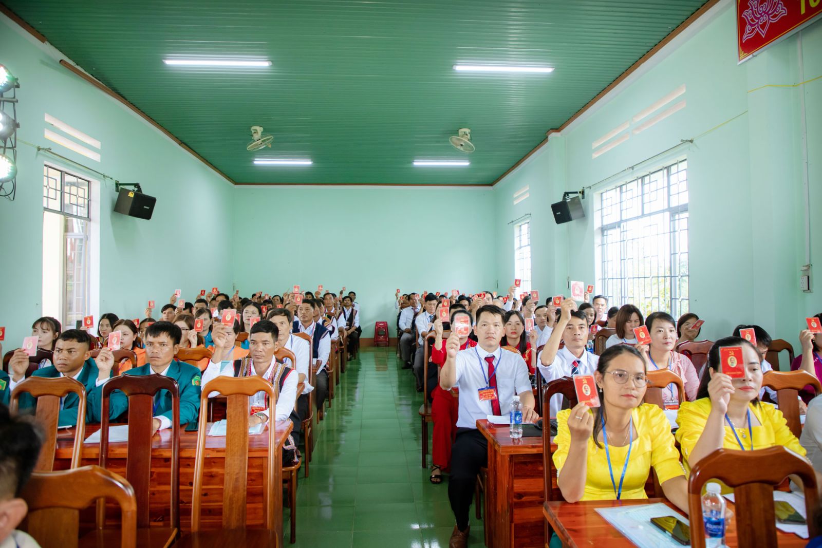 Đảng viên biểu quyết tại Đại hội đại biểu Đảng bộ xã Ya Ma lần thứ I, nhiệm kỳ 2025-2030