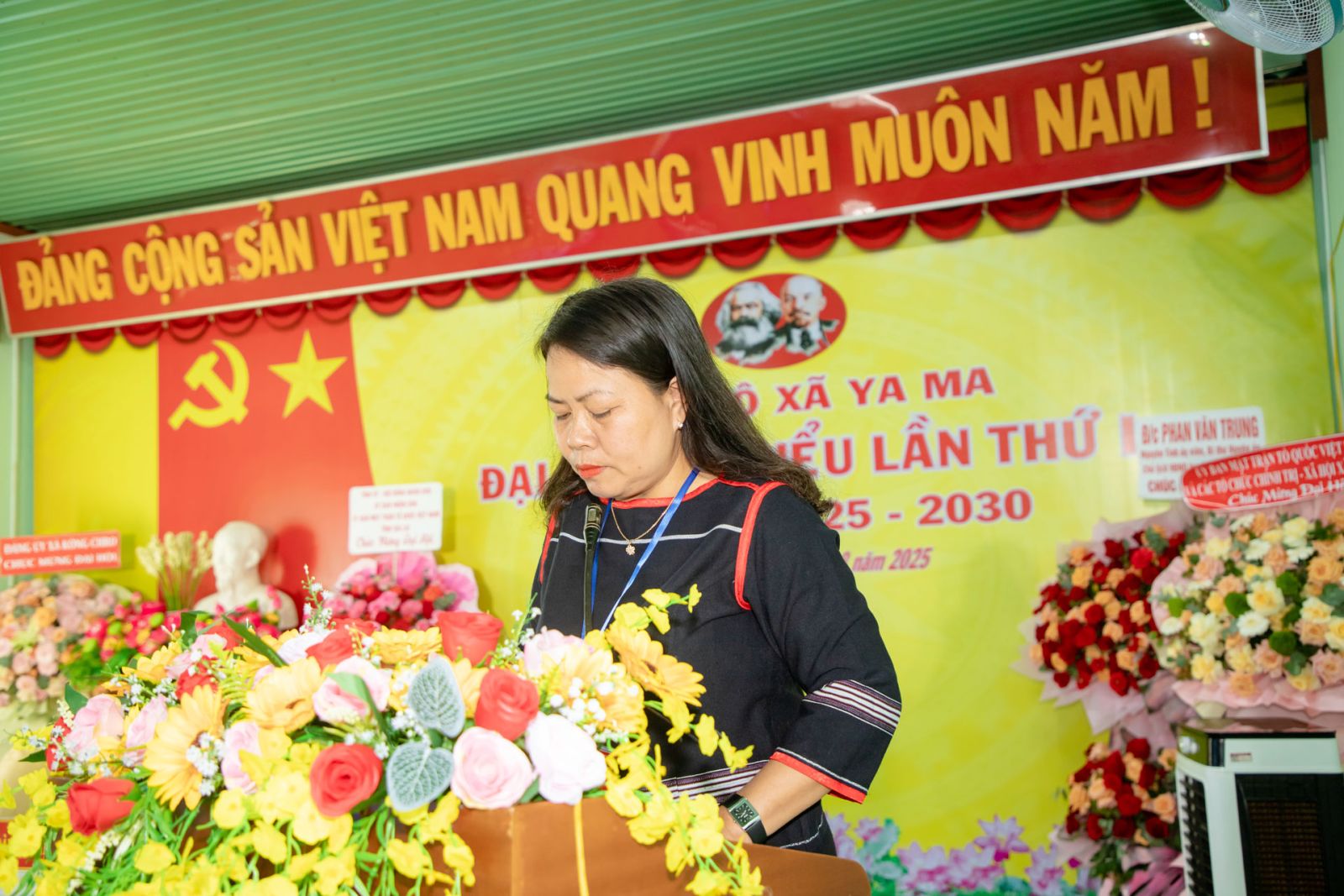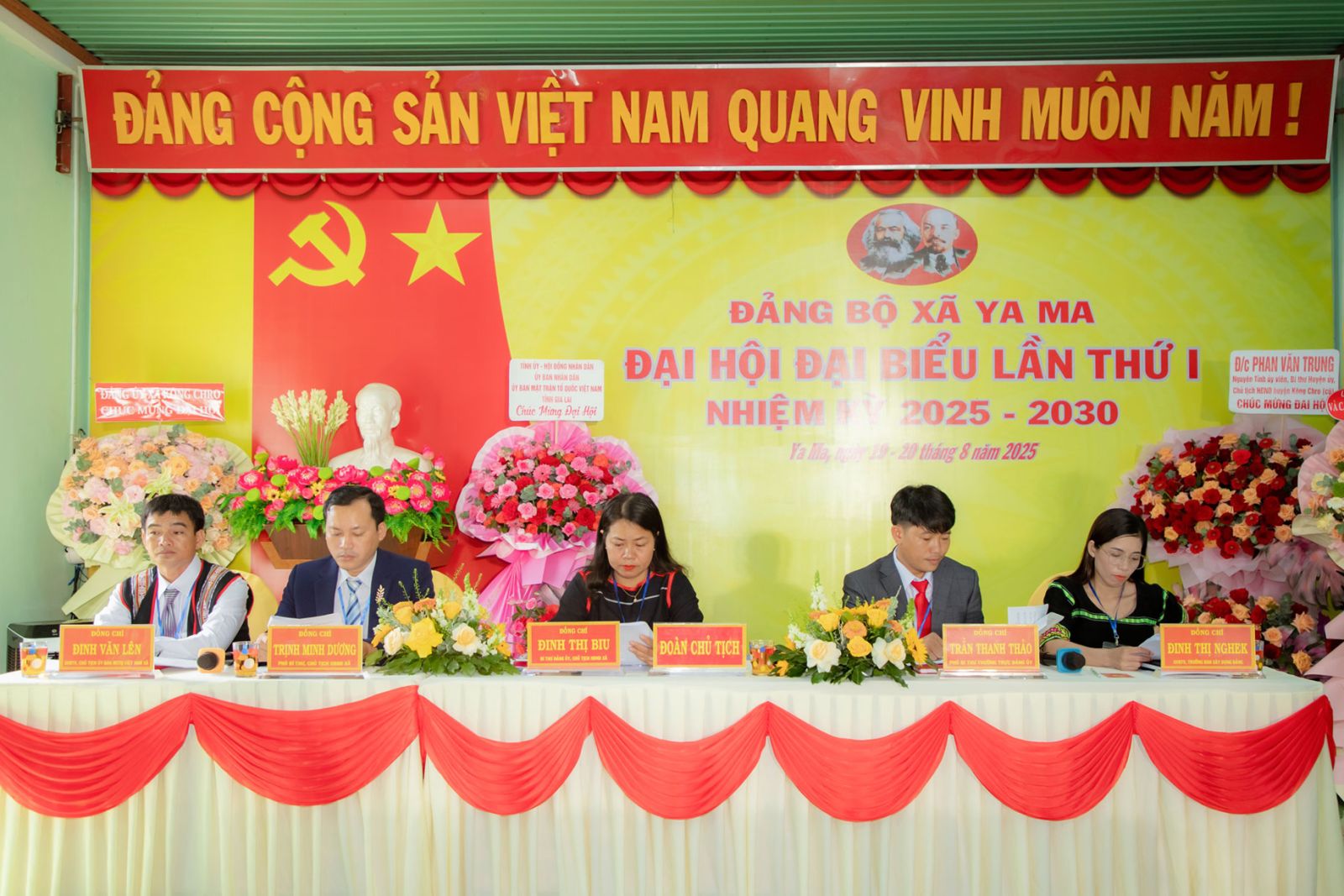 Đại hội đã thông báo Quyết định số 1586-QĐ/TU ngày 20/6/2025 của Ban Thường vụ Tỉnh ủy Gia Lai (cũ) về chỉ định Ban Chấp hành, Ban Thường vụ, Bí thư, Phó Bí thư Đảng ủy; Ủy viên Ủy ban Kiểm tra, Chủ nhiệm, Phó Chủ nhiệm Ủy ban Kiểm tra Đảng ủy nhiệm kỳ 2025-2030; Quyết định số 258-QĐ/TU ngày 07/8/2025 của Ban Thường vụ Tỉnh ủy Gia Lai (sau sáp nhập) về việc chỉ định tham gia Ban Chấp hành Đảng bộ, Ban Thường vụ Đảng ủy xã Ya Ma nhiệm kỳ 2025-2030. Theo đó, Ban Chấp hành Đảng bộ xã Ya Ma gồm 24 đồng chí, Ban Thường vụ gồm 11 đồng chí, Ủy ban Kiểm tra gồm 05 đồng chí; đồng chí Đinh Thị Biu giữ chức Bí thư Đảng ủy, Chủ tịch HĐND xã; đồng chí Trần Thanh Thảo giữ chức vụ Phó Bí thư Thường trực Đảng ủy xã; đồng chí Trịnh Minh Dương giữ chức vụ Phó Bí thư Đảng ủy, Chủ tịch UBND xã. Thông báo giới thiệu 02 đồng chí đại biểu chính thức và 01 đồng chí đại biểu dự khuyết đi dự đại hội cấp trên theo Quyết định số 86-QĐ/TU ngày 28/7/2025 của Ban Thường vụ Tỉnh ủy về phân bổ đại biểu chính thức tham dự Đại hội đại biểu Đảng bộ tỉnh Gia Lai lần thứ I, nhiệm kỳ 2025-2030.